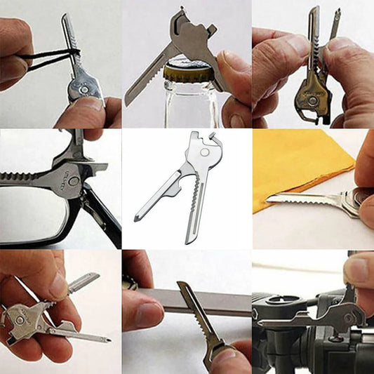 6-in-1-Miniwerkzeug Schlüsselanhänger aus Edelstahl