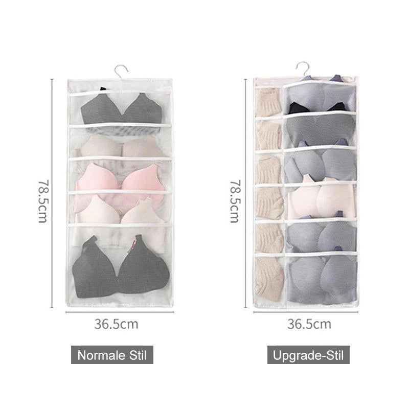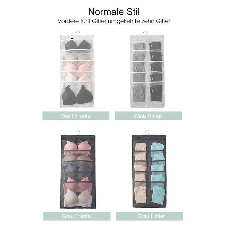 🪶 Doppelseitiges Design: Mit zwei Seiten bietet der Organizer extra viel Stauraum für Ihre Kleidung, ideal für kleine und große Wäschestücke.