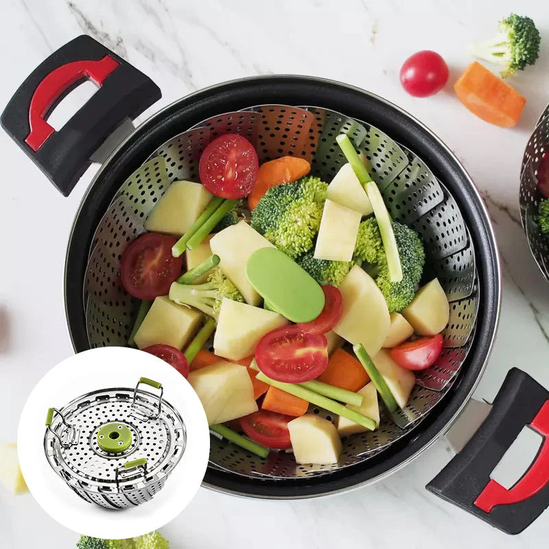 Hole dir den Faltbaren Edelstahl-Dampfgarer jetzt und bringe gesunde, leckere Mahlzeiten schnell auf den Tisch!