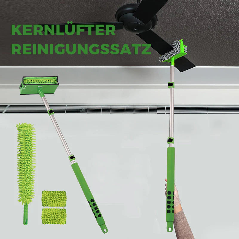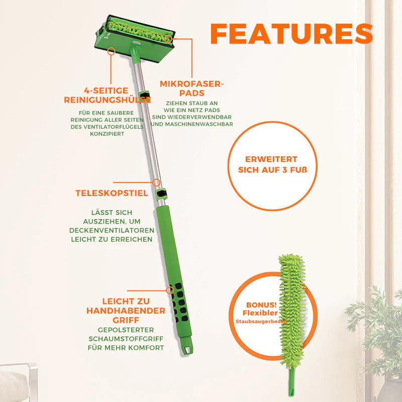 📏 Teleskopgriff für hohe Stellen: Der ausziehbare Griff macht das Reinigen von Deckenventilatoren und anderen schwer zugänglichen Flächen einfach – ganz ohne Leiter.