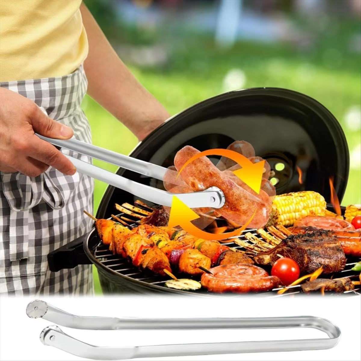 Spieße und Hähnchenflügel mühelos auf dem Grill. Die clevere Rollbewegung sorgt für ein gleichmäßiges Garen, während der lebensmittelechte Edelstahl für maximale Langlebigkeit steht. Ob Gartenparty oder Camping – mit dieser Zange wirst du zum echten Grillprofi!