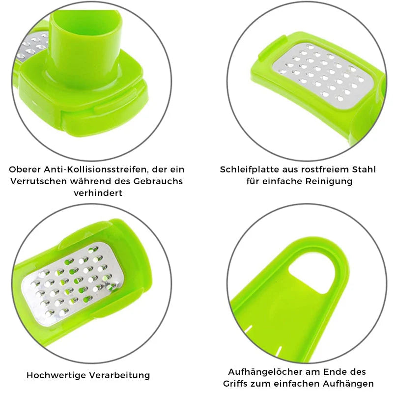 🛡️ Handschutz für mehr Sicherheit: Der integrierte Handschutz sorgt dafür, dass du dich beim Schneiden von Knoblauch nicht verletzen kannst, selbst bei hoher Geschwindigkeit und mit scharfen Klingen.