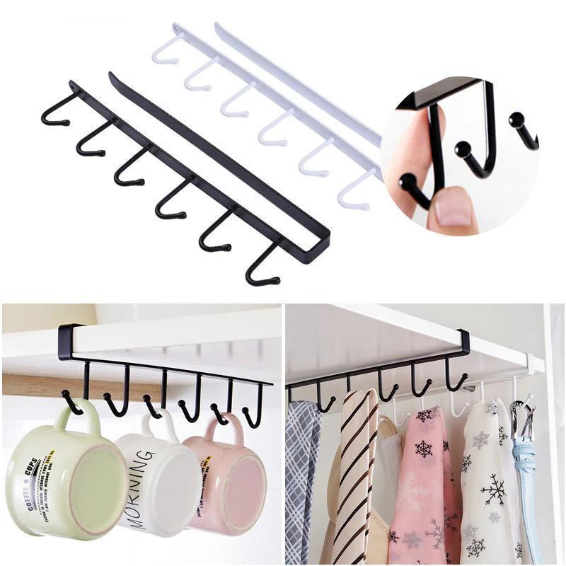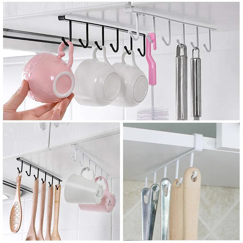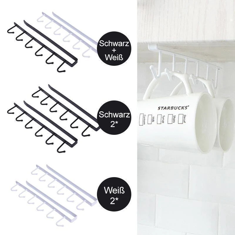 🛠️ Effiziente Raumnutzung – Einfach unter ein Regal oder ein Schrankbrett schieben und sofort sechs stabile Haken für Tassen, Geschirr oder Küchenutensilien nutzen.