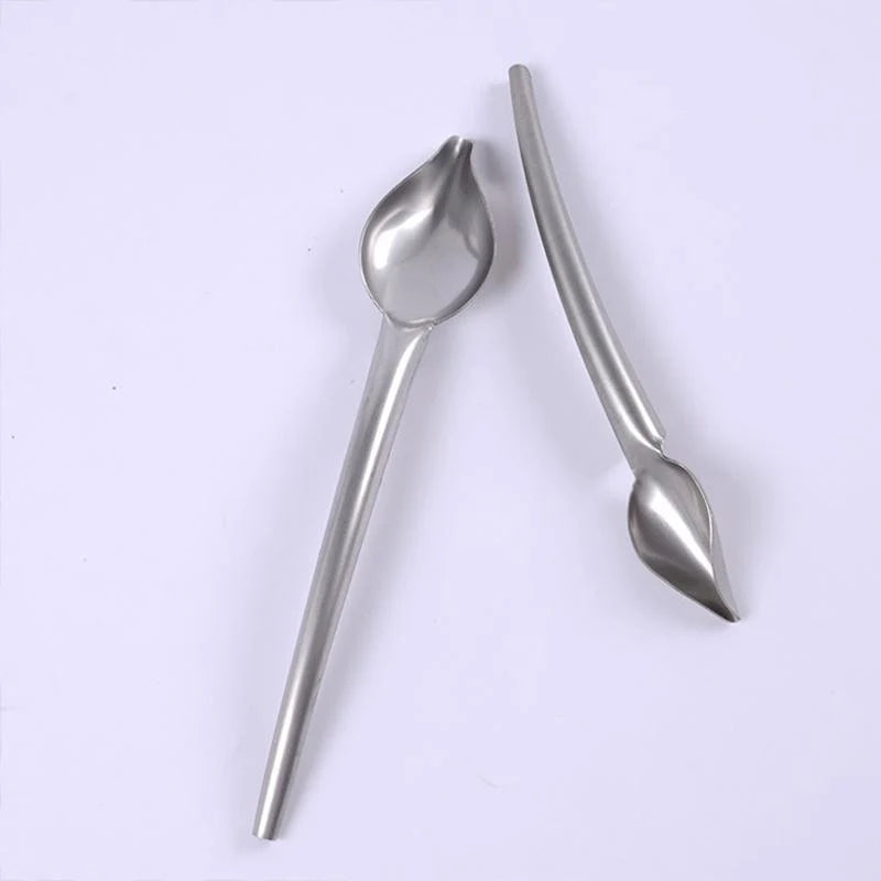 Dieser Dekorationslöffel aus hochwertigem Edelstahl ermöglicht es dir, deine kulinarischen Kreationen zu perfektionieren. Mit der feinen, bleistiftähnlichen Spitze kannst du präzise Linien und elegante Muster auf Saucen oder Desserts ziehen, während der breite Löffel die Sauce gleichmäßig verteilt. Ein ideales Werkzeug für alle, die ihre Kochkunst mit einer professionellen Präsentation verfeinern möchten.