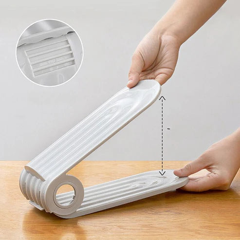 Der Schuhregal Organizer wurde speziell entwickelt, um das Chaos in deinem Schuhschrank zu beseitigen und den verfügbaren Platz optimal zu nutzen. Mit seinem robusten Design und der Möglichkeit, Schuhe übereinander zu stapeln, schaffst du Platz für noch mehr Schuhe. Egal ob Sneakers, High Heels oder Stiefel – dieser Organizer ist die perfekte Lösung für alle Schuharten.
